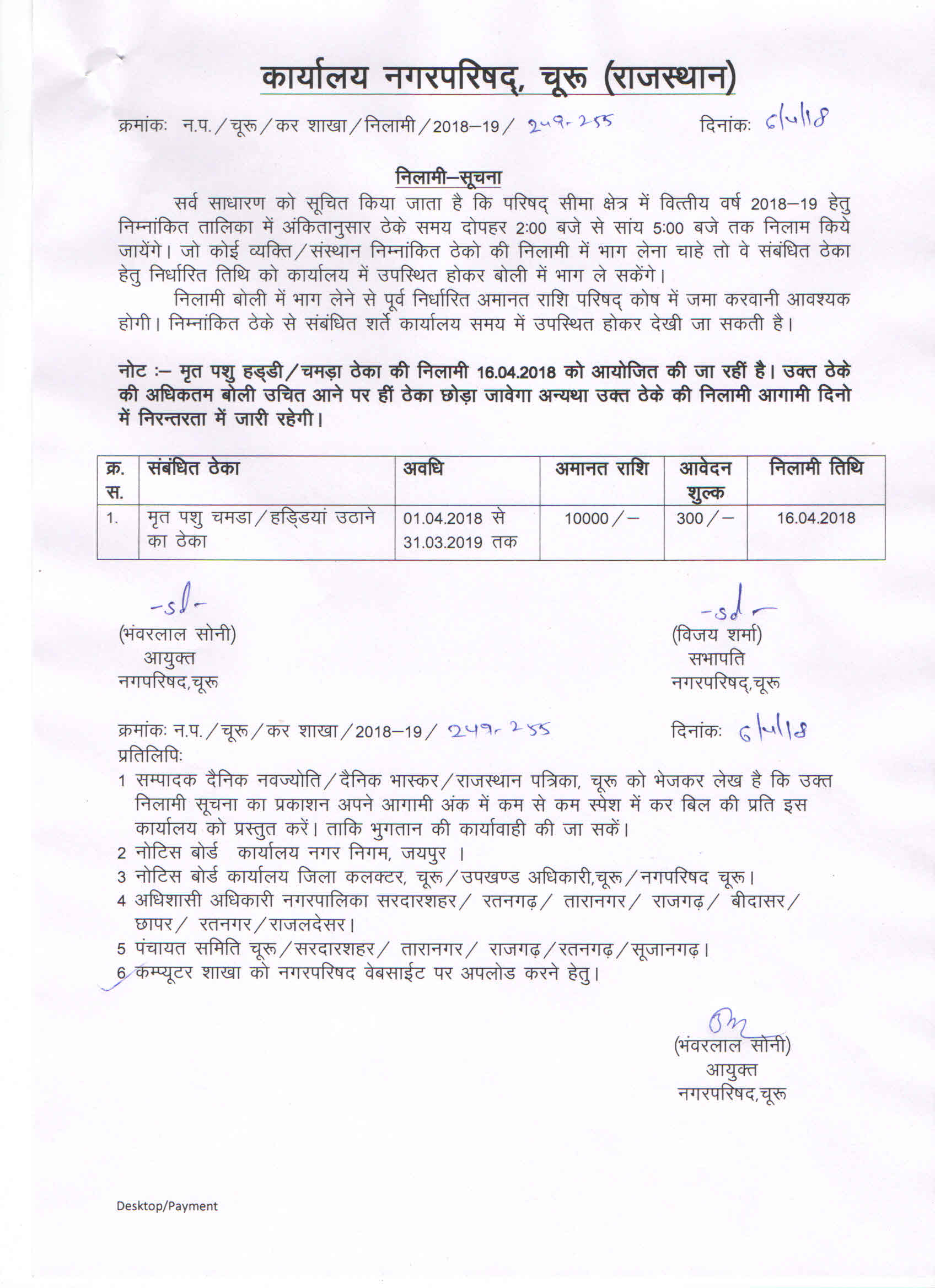- नीलामी सूचना -Year2017-18 Date- 09-03-2018